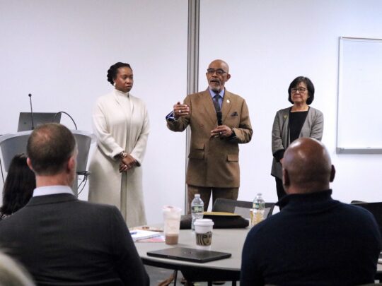 At the end of the day, Dr. Meisha Ross Porter, Visiting Senior Fellow at the Center for Educational Innovation and New Visions Board member, moderated a fireside chat with a group of Affinity Superintendents – Dr. Noah Angeles, Dr. Alan Cheng (now the Supervising Superintendent of High Schools and D79), and Fred Walsh. All of the superintendents emphasized their public commitment to learn from each other, uplift examples of great work, and grow together in the service of building an engaging, rigorous, relevant, and culturally responsive high school experience for young people.