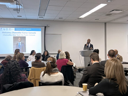 To launch the day, City Councilmember Eric Dinowitz challenged the group to tackle the question of how we will measure success. NYC Public Schools Chancellor Kamar Samuels reminded us of the importance of establishing a baseline of quality across the system, and that our values will show up in how we implement the Portrait of a Graduate.